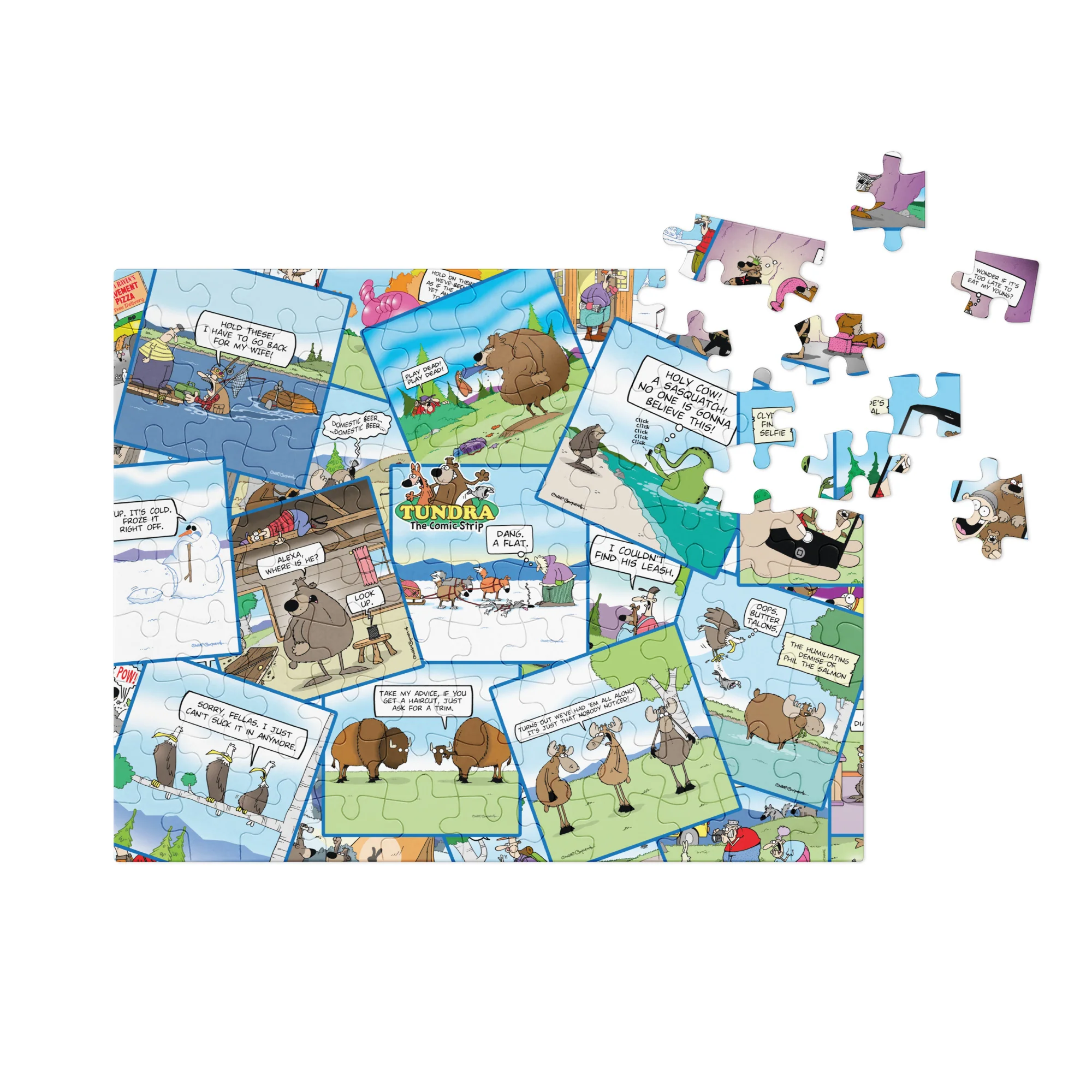 This TUNDRA puzzle takes dozens of wacky comic strips and crams them together into one gloriously chaotic challenge. Perfect for puzzle lovers, comic fans, or anyone who enjoys spending hours trying to figure out whether that tiny moose leg goes with a punchline or a snowbank.
